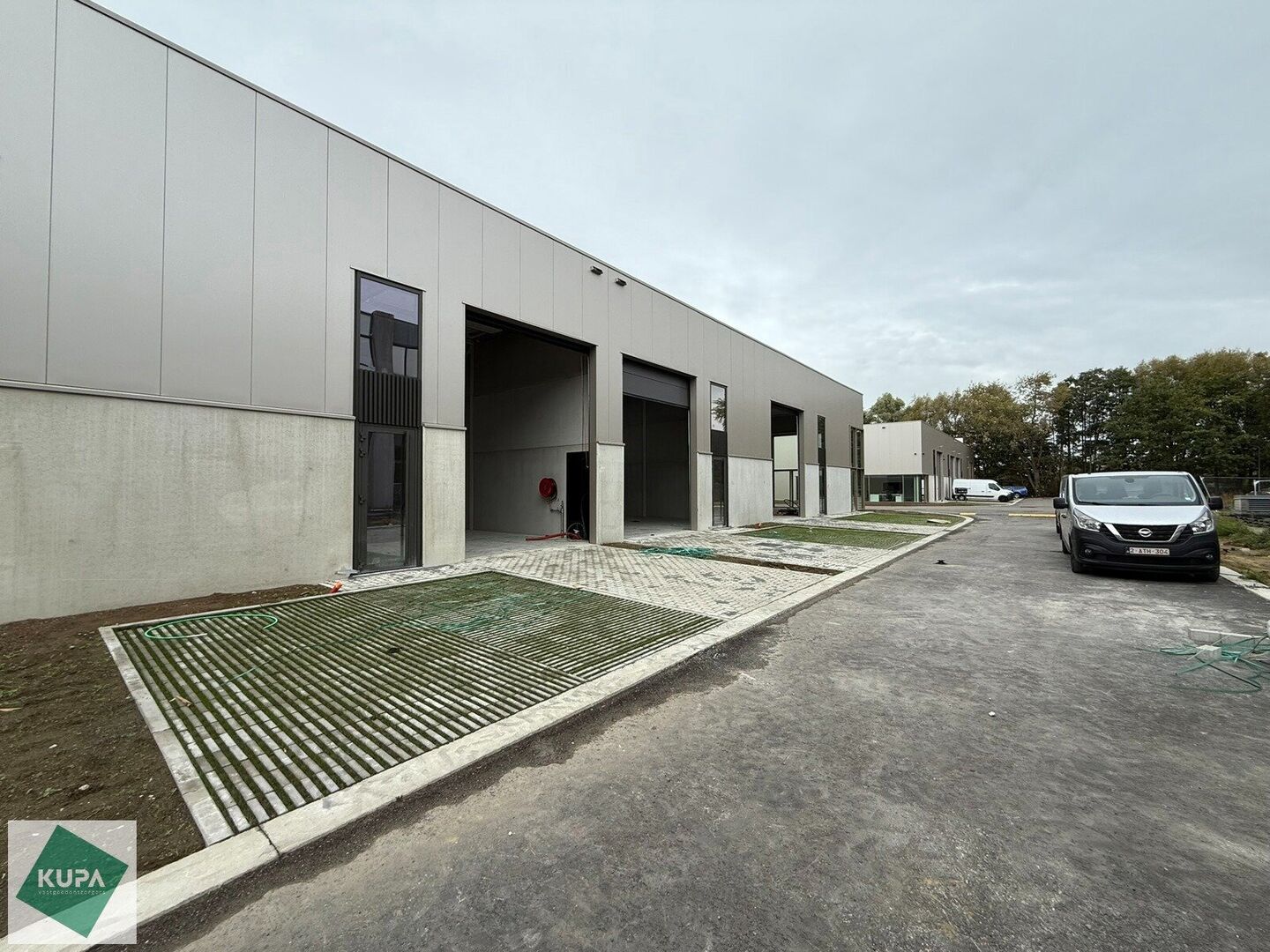 De loods van 180m² heeft een vrije hoogte van 6 meter en is gebouwd in een staalstructuur, afgewerkt met een betonnen plint en geïsoleerde sandwichpanelen en is voorzien van brandklasse C. Er is een automatische sectionale poort (4m breed x 5,2m hoog), een lichtstraat met rookluik en een duurzame polybetonvloer, verlichting. Daarnaast is er per twee units een regenwaterput voorzien.