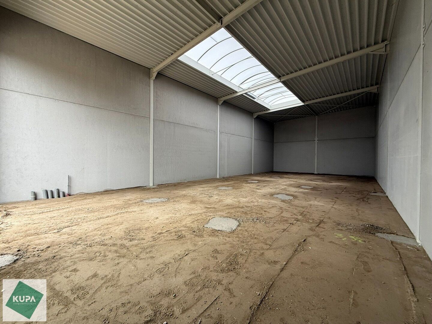 Het magazijn is opgebouwd uit een staalstructuur met een betonnen plint, geïsoleerde sandwichpanelen, voldoende raampartijen, automatisch sectionale poort, steeldeck met lichtstraat en rookluik (brandklasse C), polybetonvloer (1T/m²) en individuele nutsvoorzieningen. De magazijnen hebben een vrije hoogte van 6m en hebben een lichtpunt boven de poort, verlichting in de loods en een aantal stopcontacten.