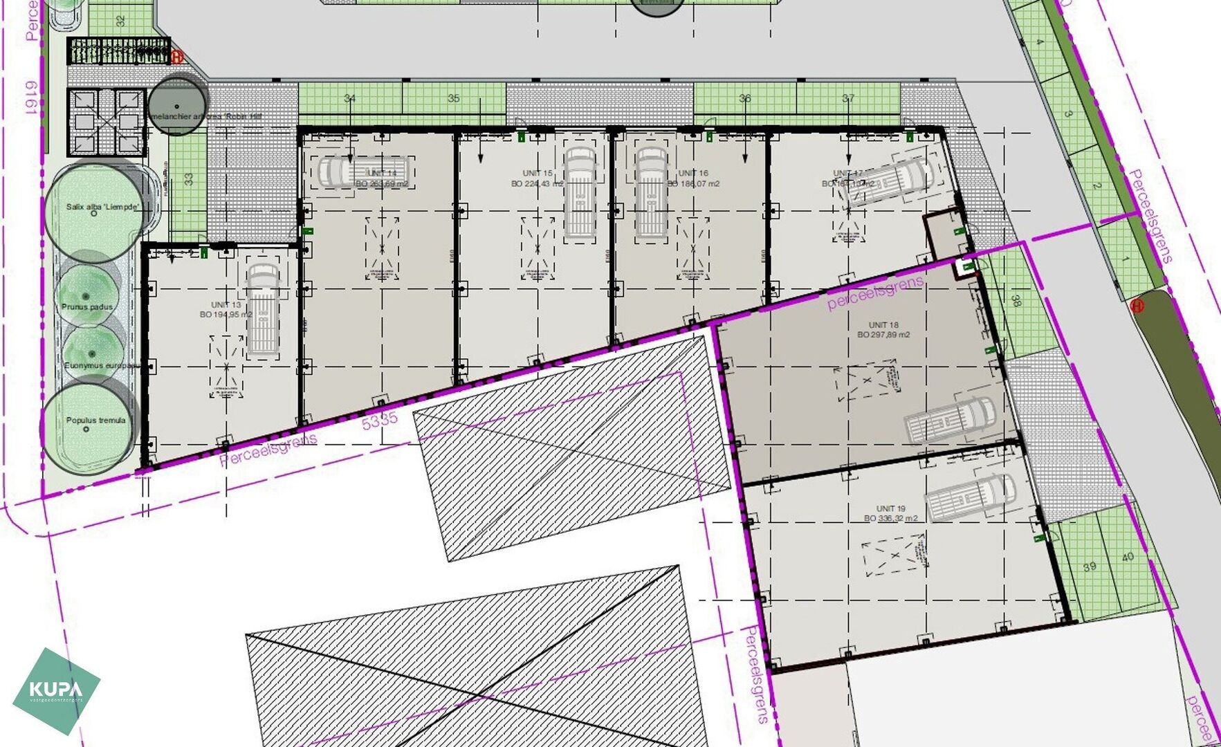 186m² casco magazijn met parking te huur in nieuw bedrijvenpark te Herzele.