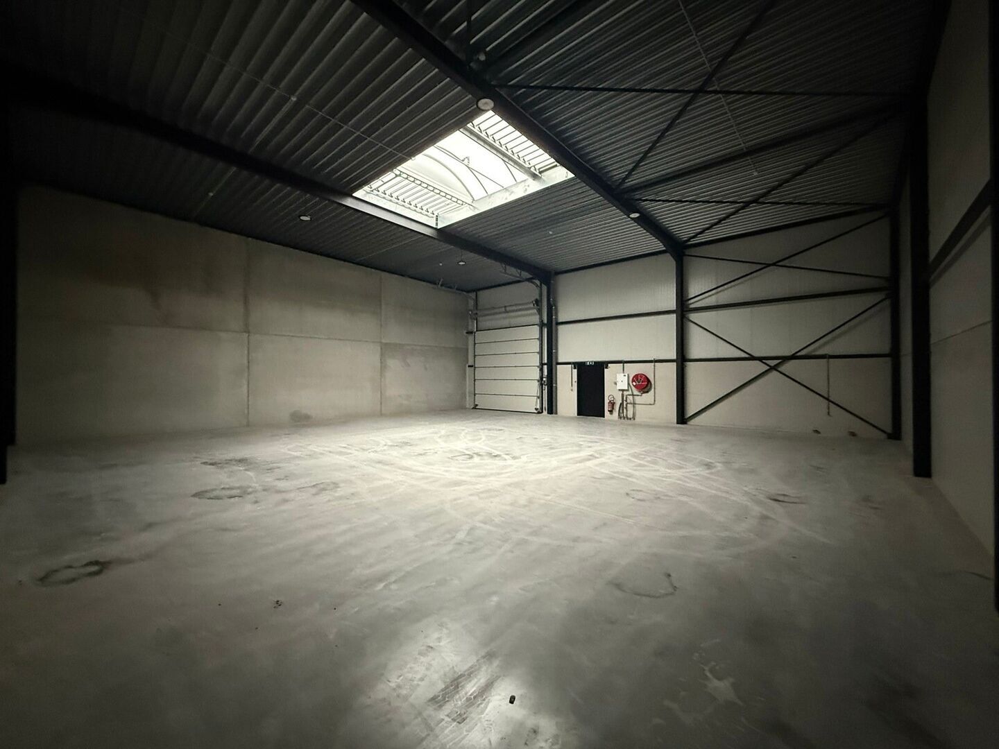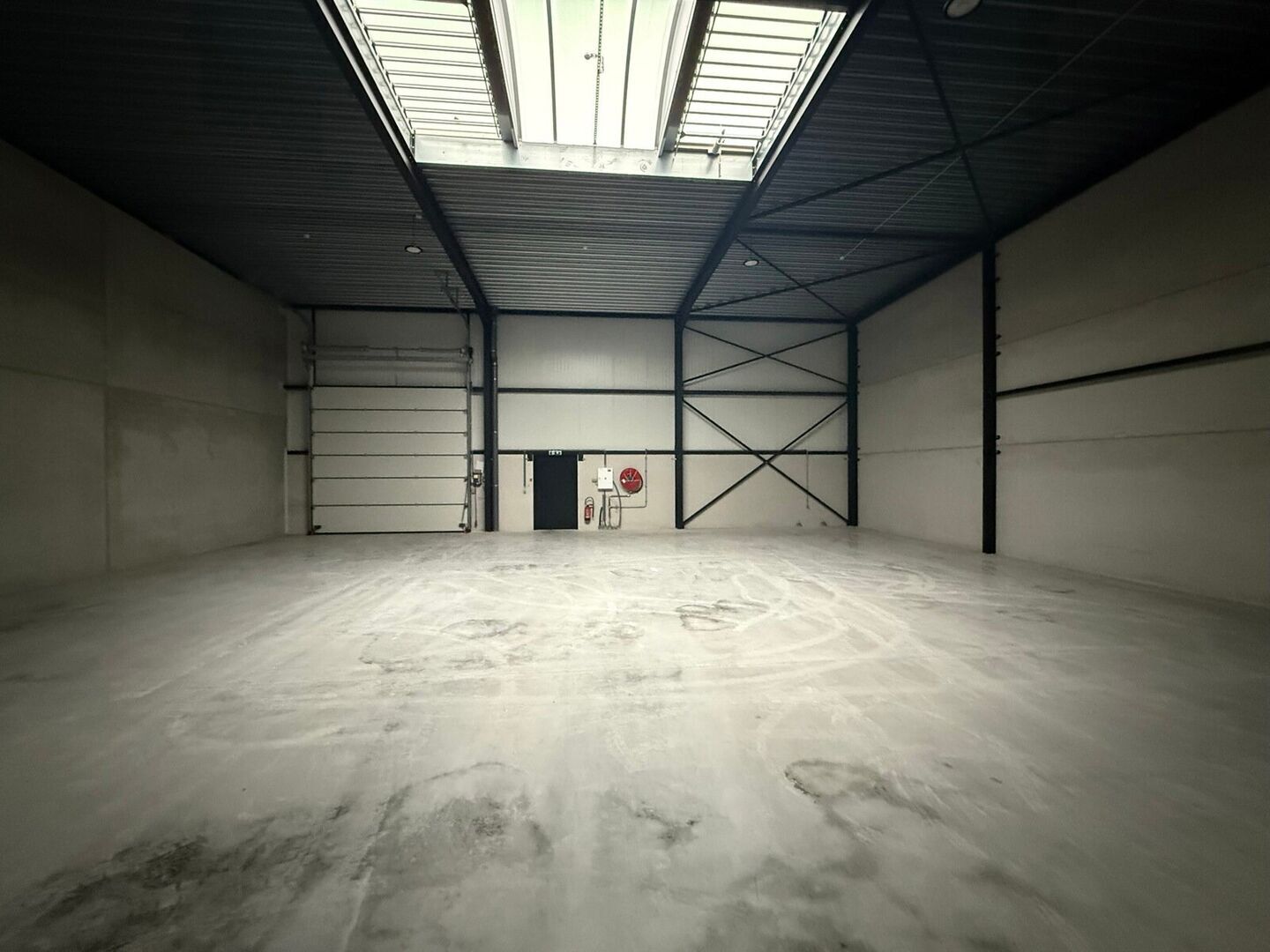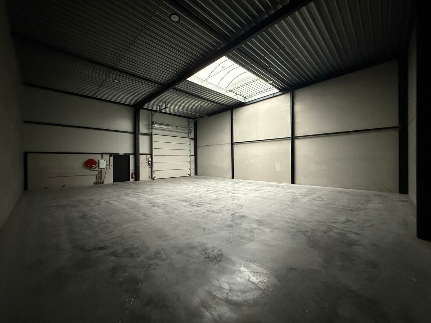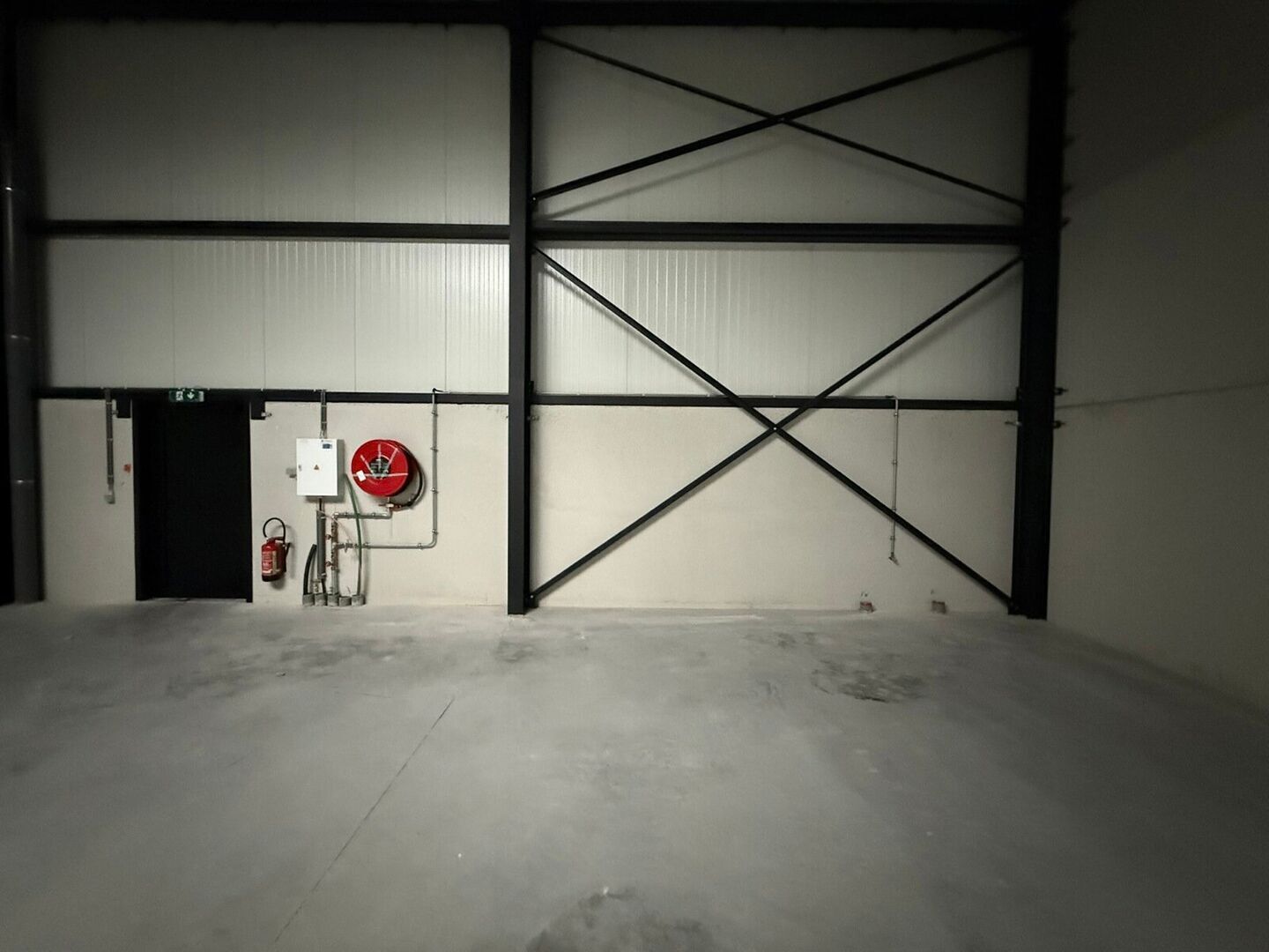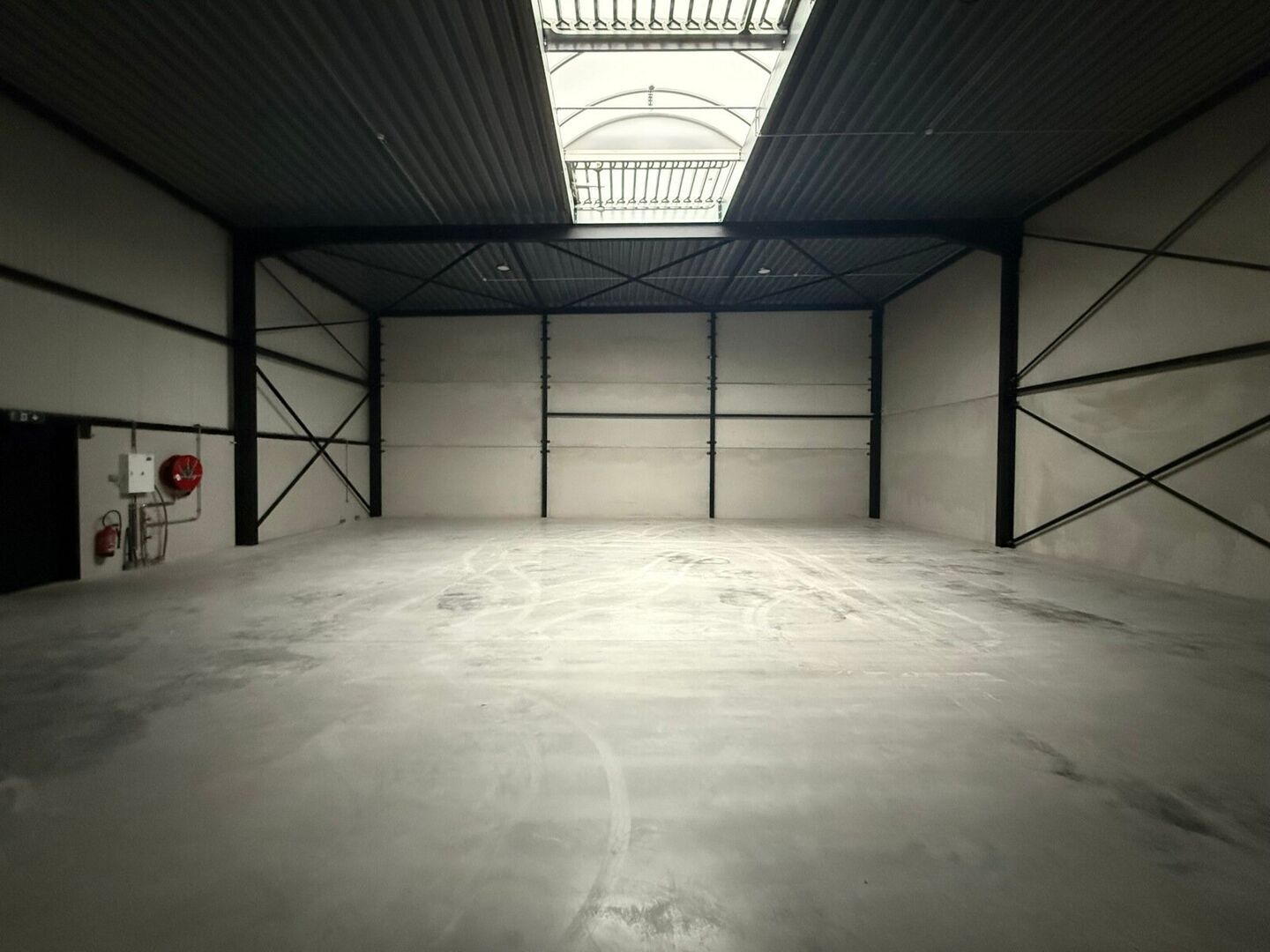 Deze nieuwbouw loods is opgebouwd uit een staalstructuur, betonplint en geïsoleerde sandwichpanelen, met tussenwanden van 14 cm beton, een geïsoleerd steeldeck, polybetonvloer (2T/m²), aluminium buitenschrijnwerk, sectionale poort (4m x 4m), RWA, buitenverlichting en branddetectie.