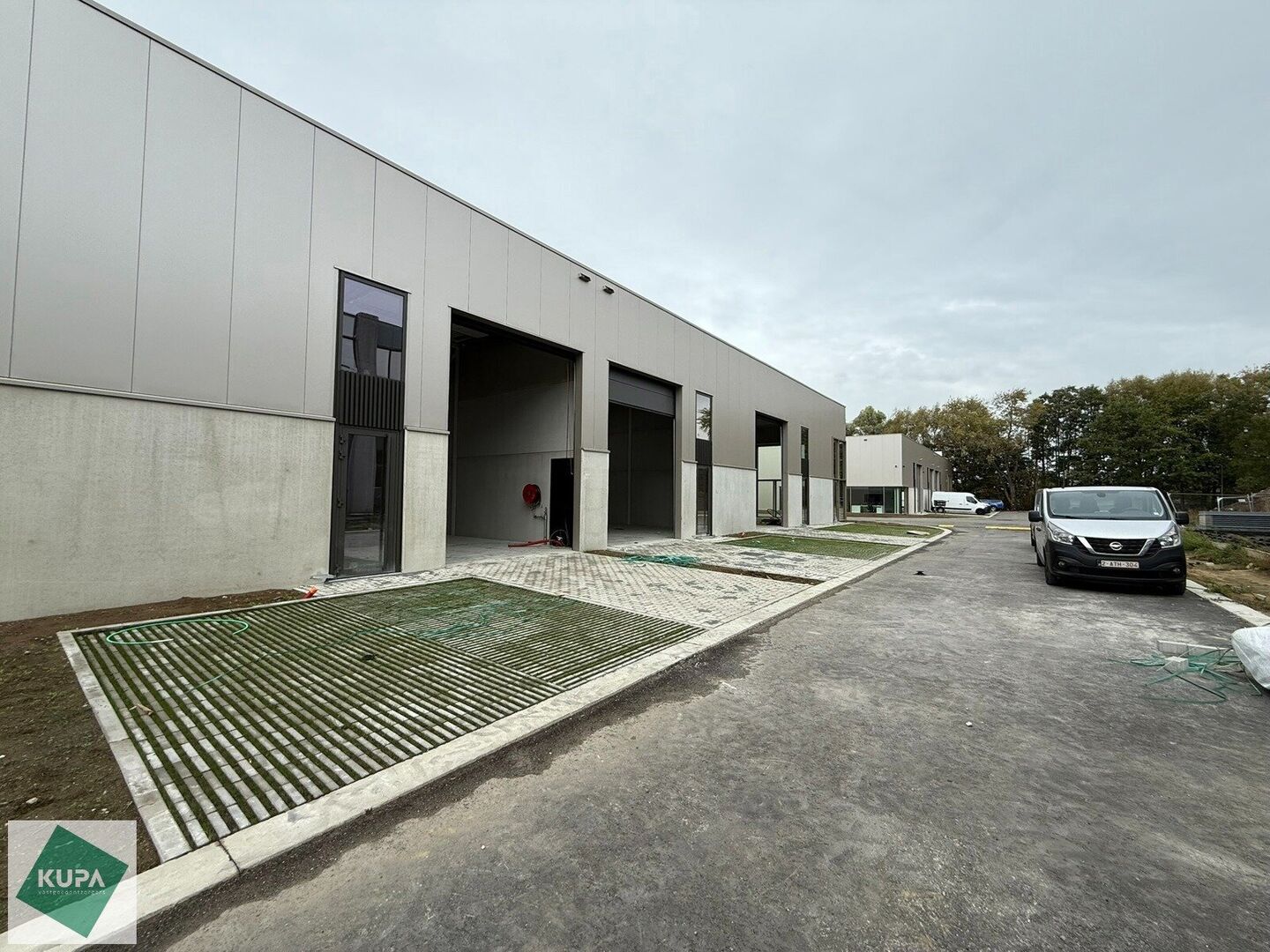 De loods van 180m² heeft een vrije hoogte van 6 meter en is gebouwd in een staalstructuur, afgewerkt met een betonnen plint en geïsoleerde sandwichpanelen en is voorzien van brandklasse C. Er is een automatische sectionale poort (4m breed x 5,2m hoog), een lichtstraat met rookluik en een duurzame polybetonvloer, verlichting. Daarnaast is er per twee units een regenwaterput voorzien.