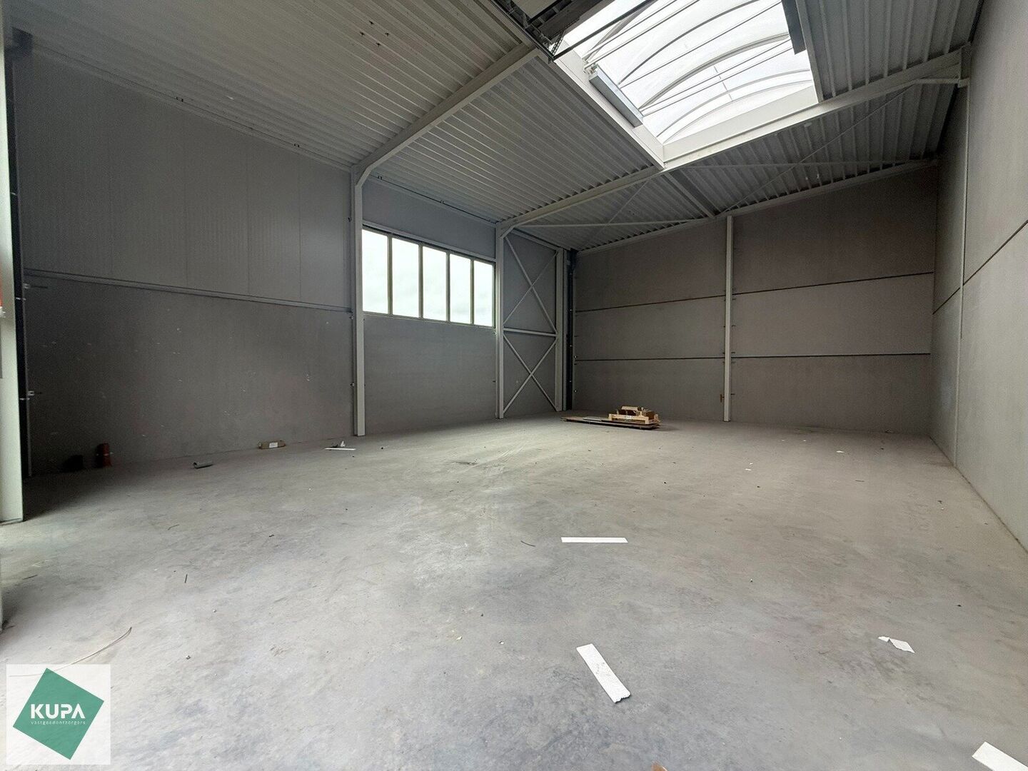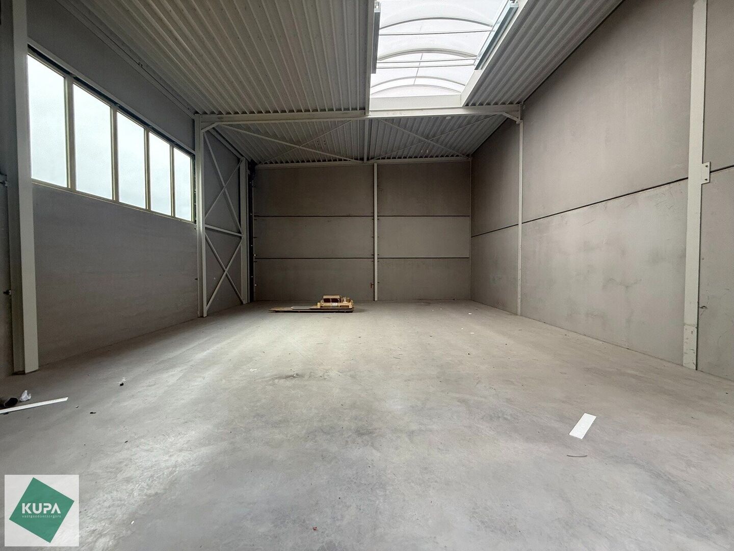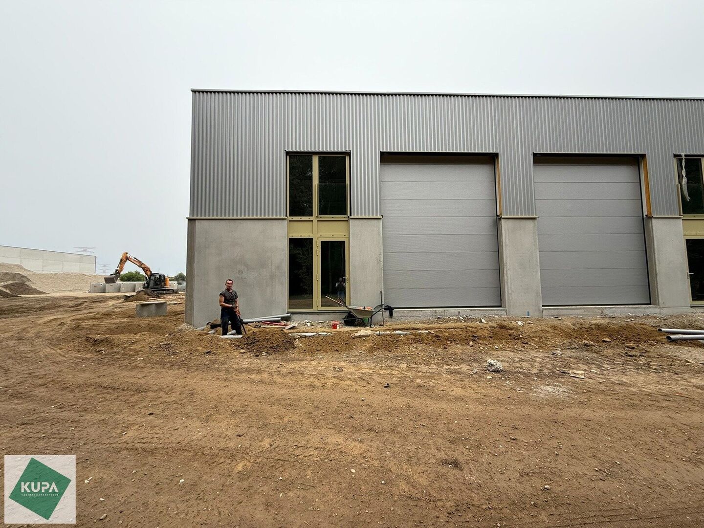 Het magazijn is opgebouwd uit een staalstructuur met een betonnen plint, geïsoleerde sandwichpanelen, voldoende raampartijen, automatisch sectionale poort, steeldeck met lichtstraat en rookluik (brandklasse C), polybetonvloer (1T/m²) en individuele nutsvoorzieningen. De magazijnen hebben een vrije hoogte van 6m en hebben een lichtpunt boven de poort, verlichting in de loods en een aantal stopcontacten.