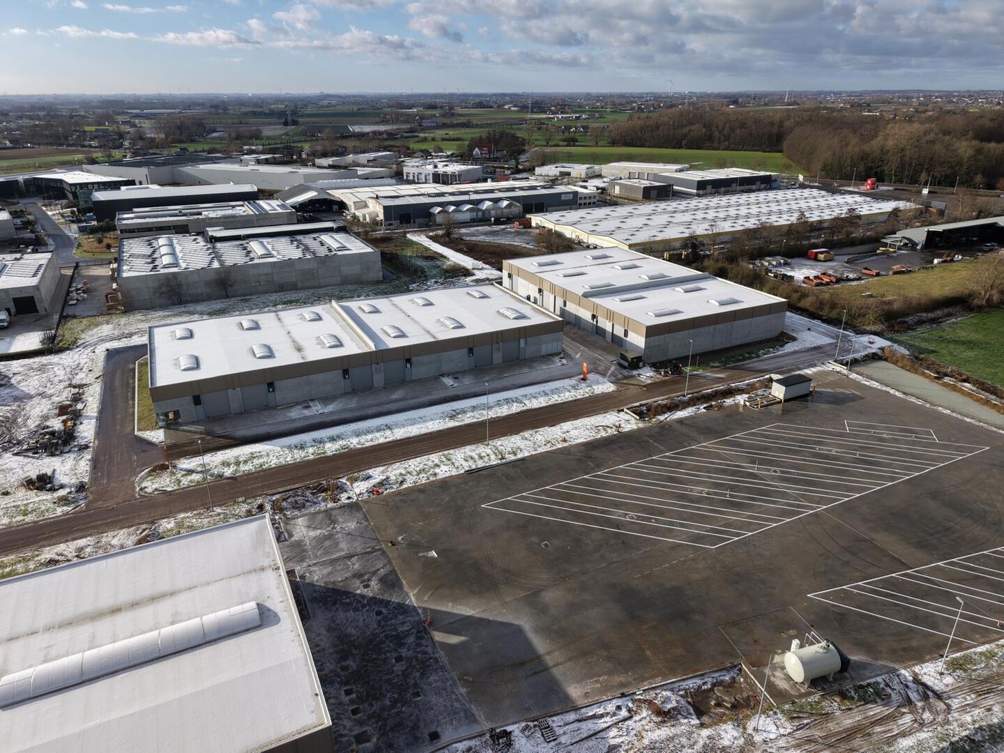 In het nieuwe bedrijvenpark “Thea” biedt KUPA IMMO nieuwe magazijnen te huur aan.