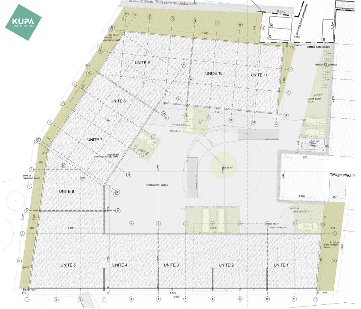 Deze KMO-units zijn strategisch gelegen langs de Chaussée de Mons in Ath, een vlot bereikbare locatie voor zowel lokale ondernemers als bedrijven die actief zijn in de ruimere regio. De site ligt op korte afstand van het centrum van Ath. De magazijnen zijn als volgt opgebouwd: een vrije hoogte van 6 meter, met een solide staalstructuur, betonnen wanden en geïsoleerde sandwichpanelen. Er is een automatische sectionale poort (4m x 4m) met aparte toegangsdeur en raampartij boven de deur. Daarnaast zijn de loodsen uitgerust met een duurzame polybetonvloer, branddetectie en individuele aansluitingen voor water, elektriciteit en internet. Oplevering: Q2 2026
