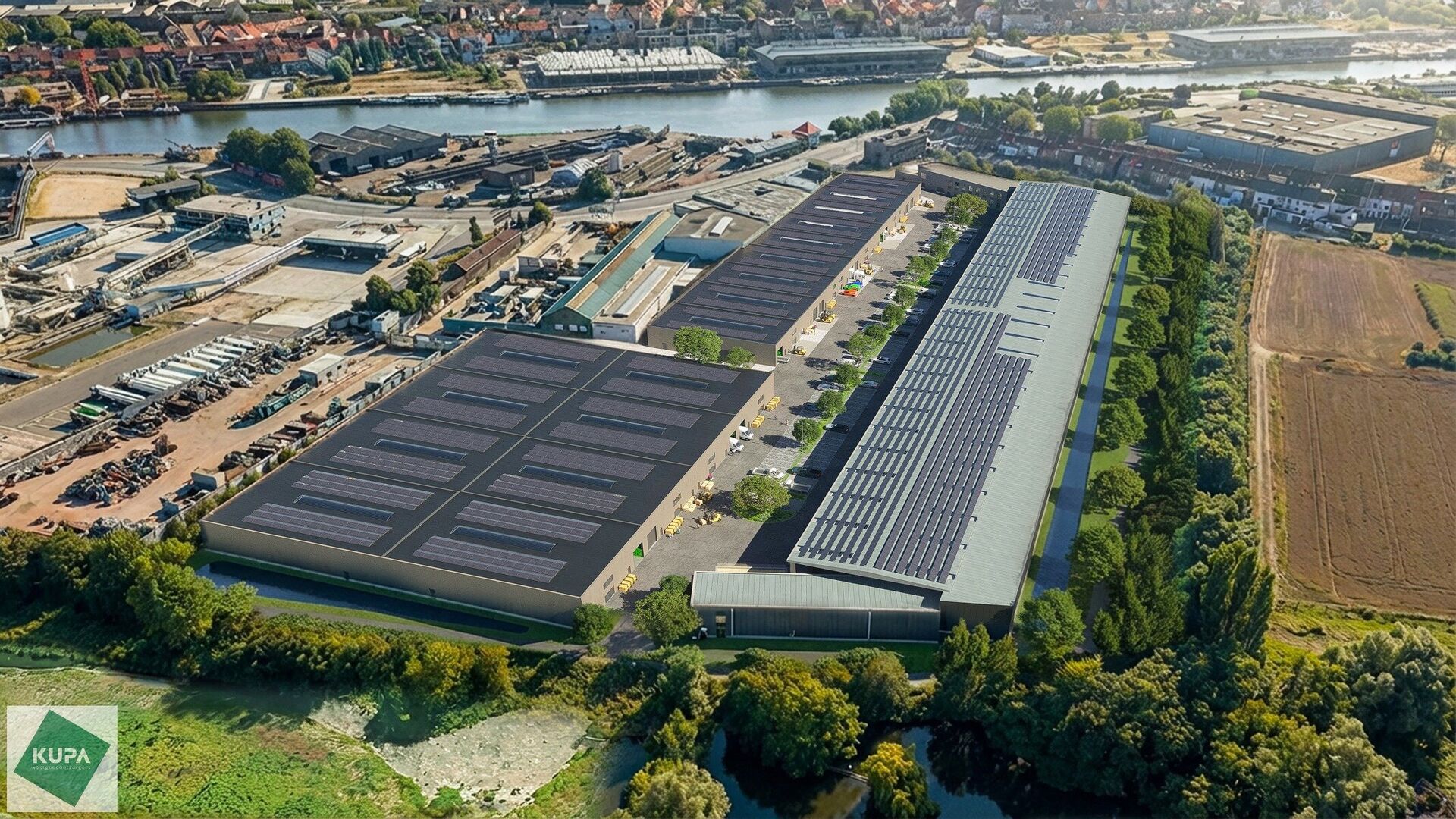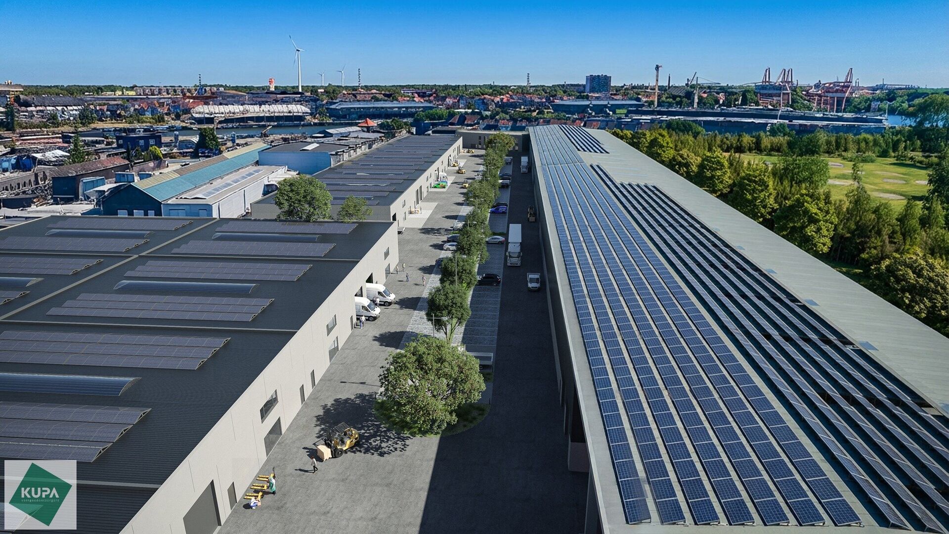 Dit modern en strategisch gelegen bedrijventerrein bevindt zich aan de Wiedauwkaai 66 in de voorhaven van Gent, met vlotte bereikbaarheid via de R40 en een bushalte vlakbij.